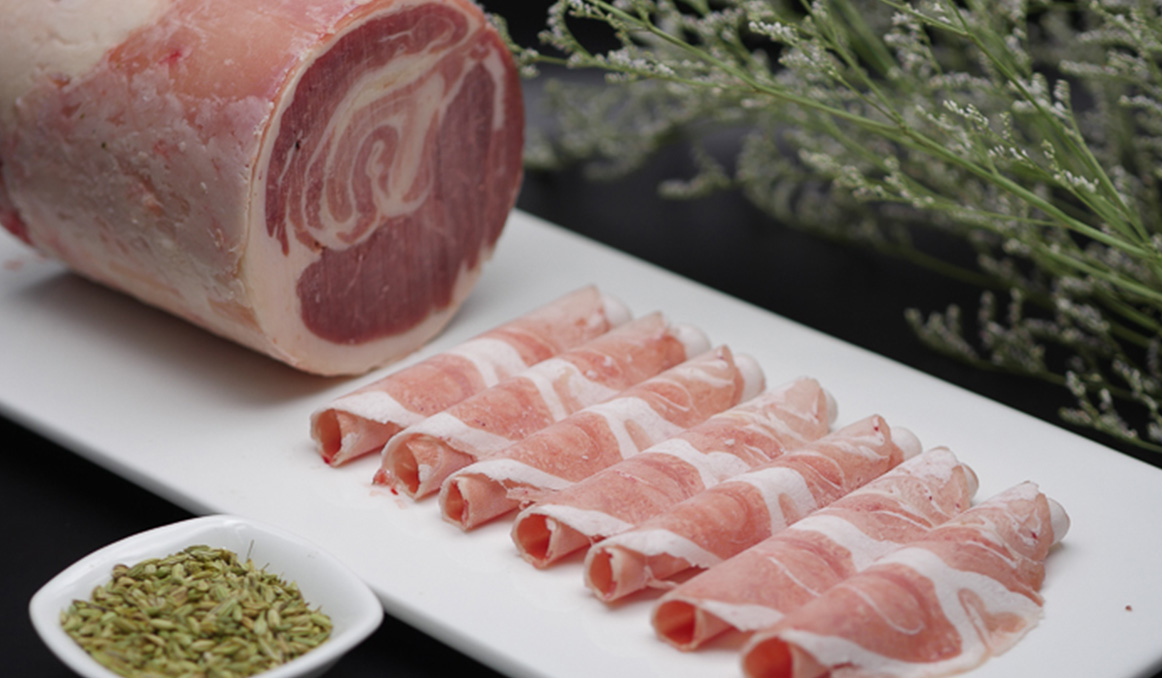 脊椎骨(1-6肋)兩側部位肉,部位肉酮體占3.6%,表面去風干肉、淤血肉及軟硬骨,保留自然脂肪,肉質細嫩多汁,脂肪雜交均勻,有好看的大理石花紋,口感綿軟。