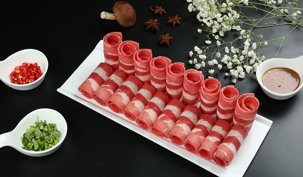 精選羔羊腿肉和肩甲軟骨部為原料。肌肉與軟骨按標準合理搭配,涮制后既有肉質鮮美醇香的感覺又有脆骨清脆的咬感,是涮食佳品。