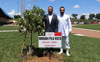 大莊園董事長陳希濱先生回訪巴西JBS,并和巴西JBS高層國際出口總監Rogerio Bonato-羅杰里奧 博納多一起種下寓意長遠合作與友誼之樹。
